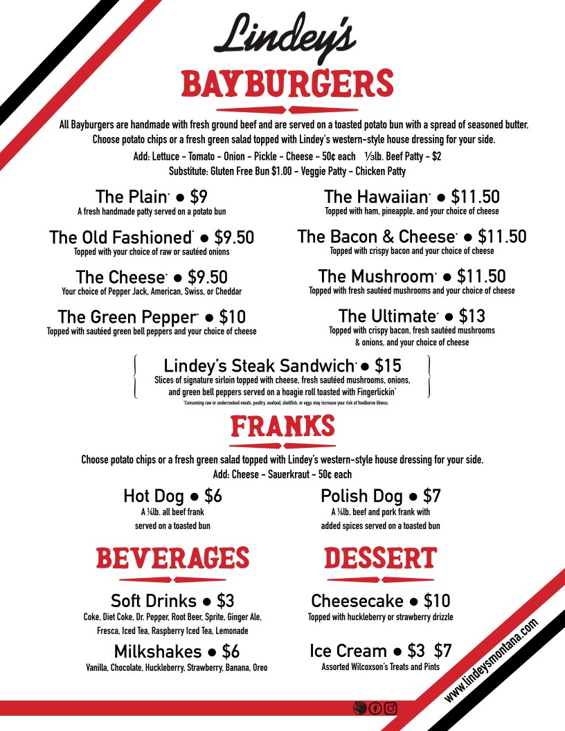 Welcome to Lindey's Landing West Bayburgers, a delightful lakeside eatery nestled in Seeley Lake, Montana. Here, the menu showcases a selection of rich, flavorful burgers, with the highlight being the Ultimate Bay Burger—a massive creation that has both locals and visitors raving. Each bite is a juicy testament to craftsmanship.